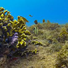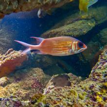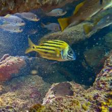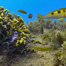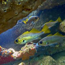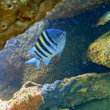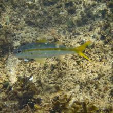 Abudefduf saxatilis (1) Acanthurus bahianus (2) Anisotremus moricandi (1) Chaetodon striatus (2) Coryphopterus glaucofraenum (1) Halichoeres brasiliensis (1) Halichoeres poeyi (2) Holacanthus ciliaris (1) Holocentrus adscensionis (1) Mugil liza (1) Mulloidichthys martinicus (1) Odontoscion dentex (2) Pomacanthus paru (1) Priacanthus hamrur (1) Pseudupeneus maculatus (1) Stegastes fuscus (2) Stegastes variabilis (1)